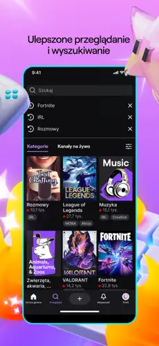 • Transmisje na żywo – oglądaj ulubionych streamerów z całego świata.