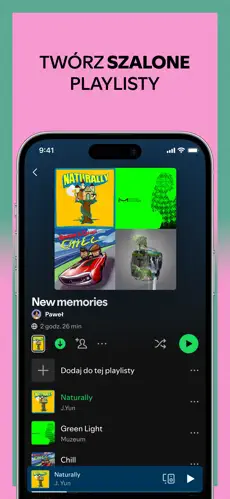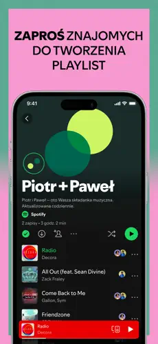 • Odkrywanie spersonalizowanych playlist stworzonych specjalnie dla Ciebie oraz współtworzenie playlist ze znajomymi.