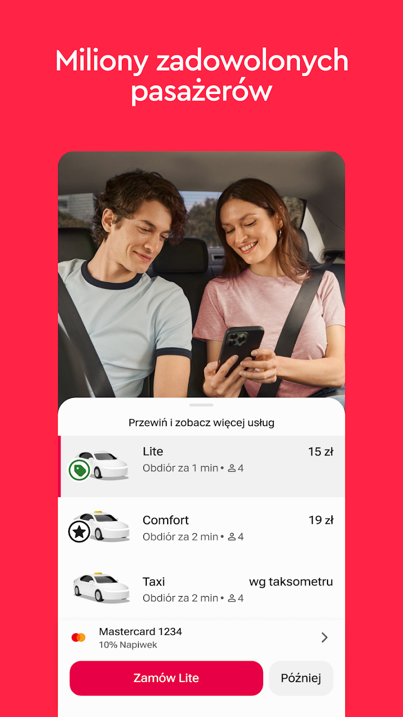 • oszczędność czasu dzięki szybkiemu zamawianiu przejazdów,