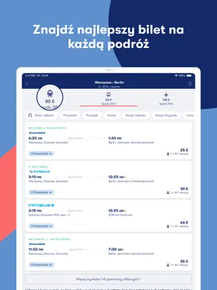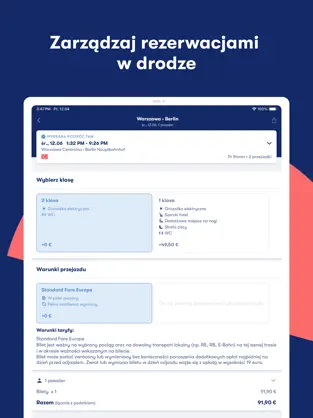 Zarezerwuj bilety na podróż w kilka kliknięć – bez kolejek, bez wydruków. Wszystkie bilety są przechowywane w aplikacji. - Obsługa ponad 35 krajów i wielu języków