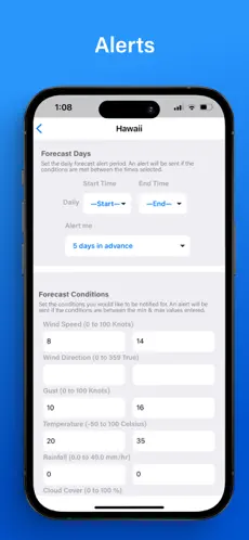 Aplikacja wysyła ostrzeżenia o nagłych zmianach pogody, silnym wietrze czy niebezpiecznych warunkach, zwiększając bezpieczeństwo załogi.